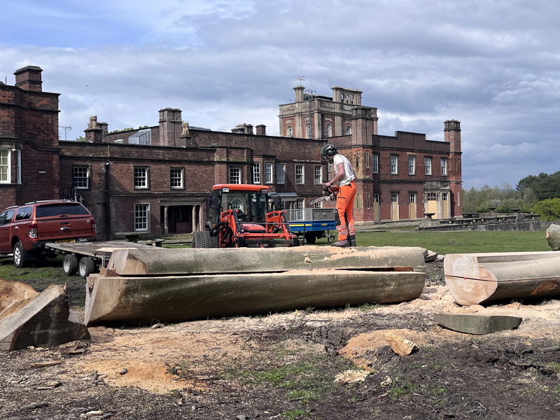 Need timber cut to size on your land? Our bespoke timber cutting service helps landowners and estate managers turn felled or stored trees into beams, slabs, or boards, perfectly tailored for your project.
